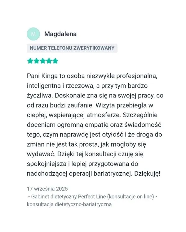 potrzebujesz zaświadczenie o odbyciu konsultacji z dietetykiem bariatrycznym